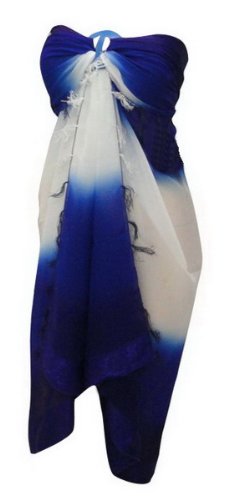 La Leela Bleu Imprimé La Leela mousseline de soie fine imprimée florale bain Paréo hawaïenne Couvrez-vous Florale imprimé Blanc Bleu plage Paréo.